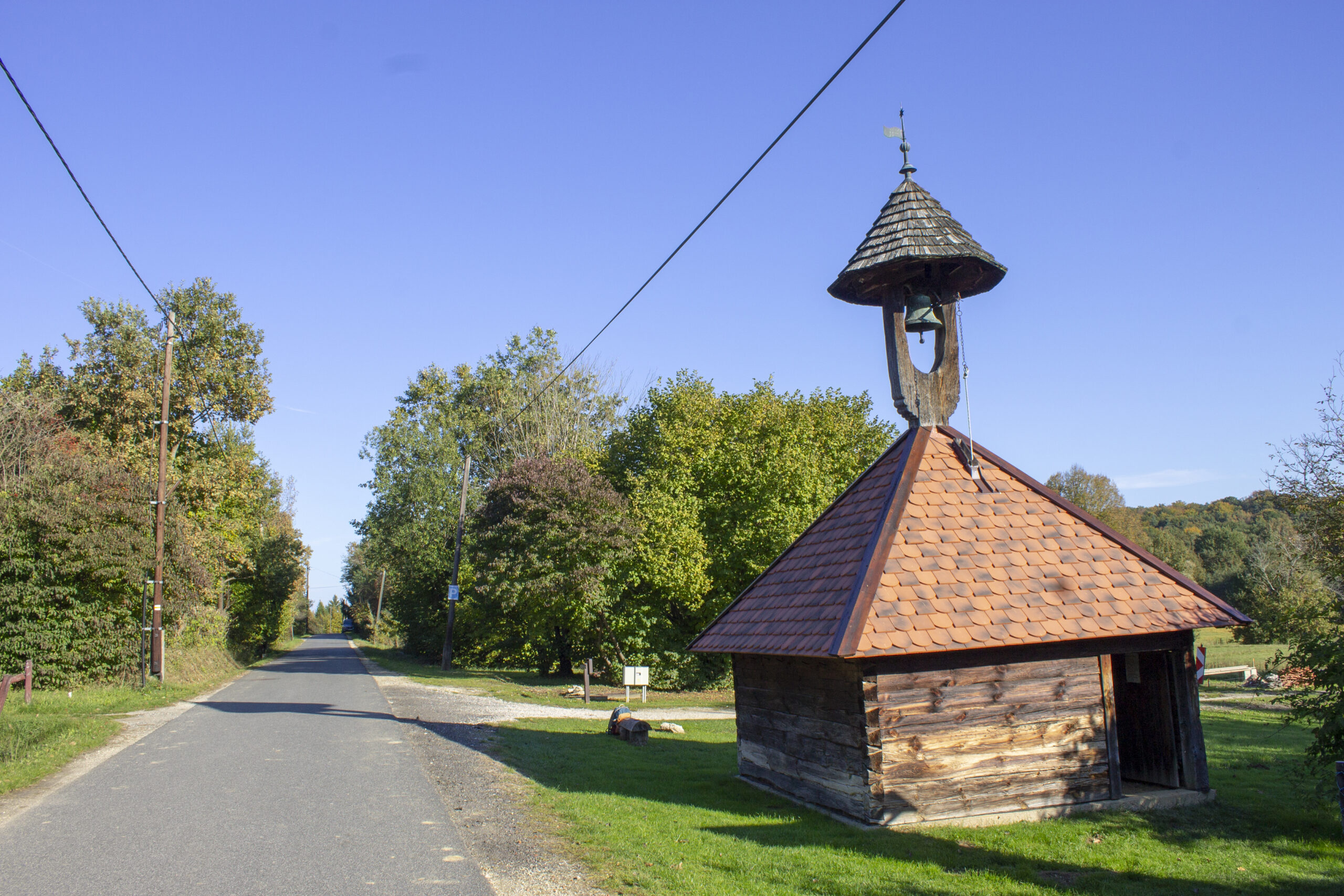 Itt tettünk egy kis kitérőt a haranglábig, ahol kellemes meglepetés ért minket. A falun áttalpalva egy autó előzött meg minket, mint kiderült a vezetője, egy nagyon kedves hölgy, aggódva látta, hogy gombákat cipelünk magunkkal. Így aztán megkeresett minket a haranglábnál és átnézte a szatyrunkat. Megnyugtatott, hogy mindegyik ehető darab és kedvesen elbeszélgetett velünk a turisták és gombák viszonyáról.