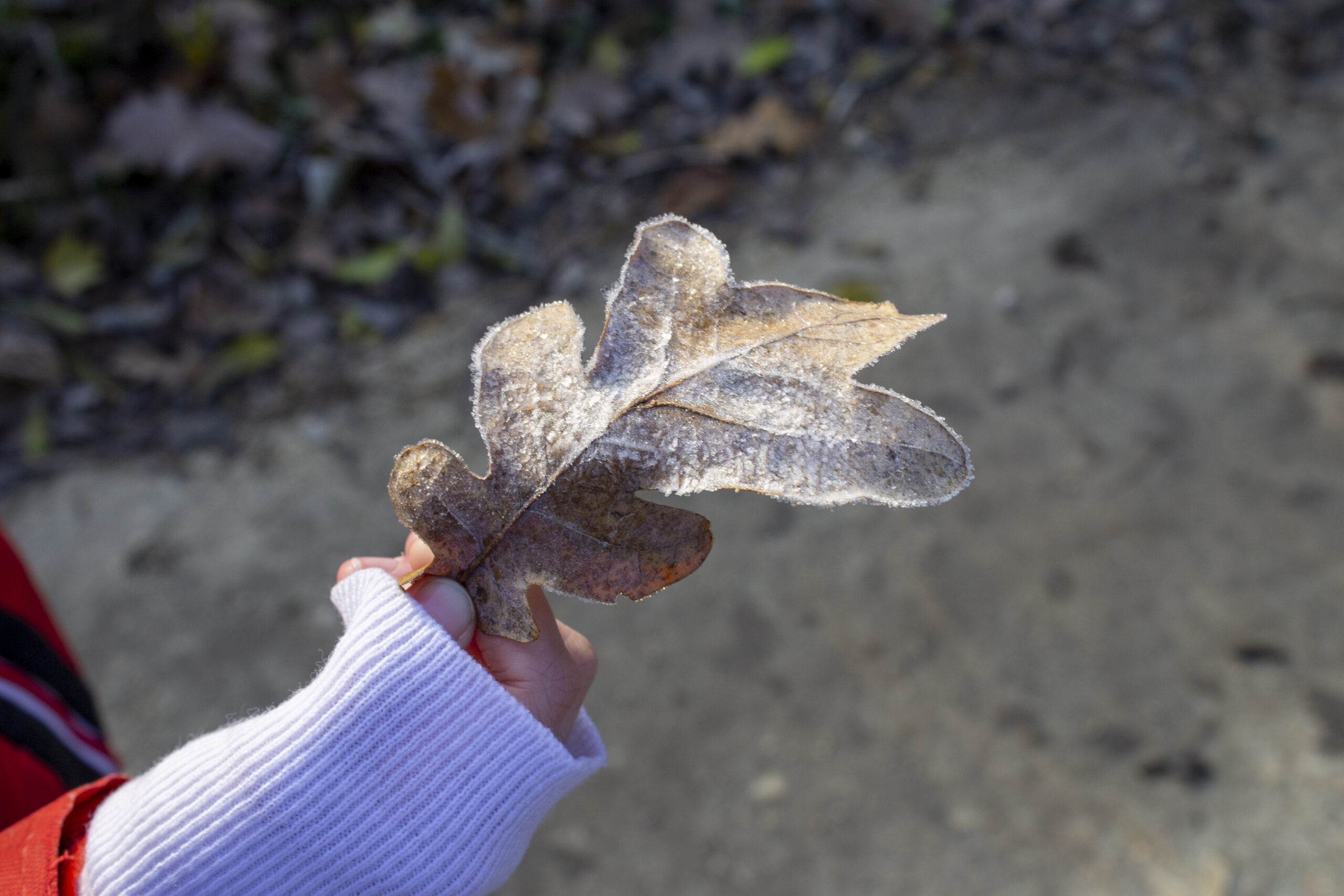 Hosszú talpalás után végül magunk mögött hagytuk Piliscsabát és elbúcsúztunk Aputól is. Kezdett olvadozni a dér, csöpögött a fákról, de az árnyékos részeken még nagy hókristályok fedtek be mindent. Fotóztuk a fagyos leveleket, a szépen csillogó bokrokat meg a gyönyörű ködös fákat. Mindig meglep, hogy a lányommal közel olyan tempót lehet menni, mint amikor felnőtt társaságban túrázom és még pihenni sem kell többször megállni vele. Kifogyhatatlanul fecseg menet közben, most állandóan visszatért valami villongásra az osztálytársnői között.