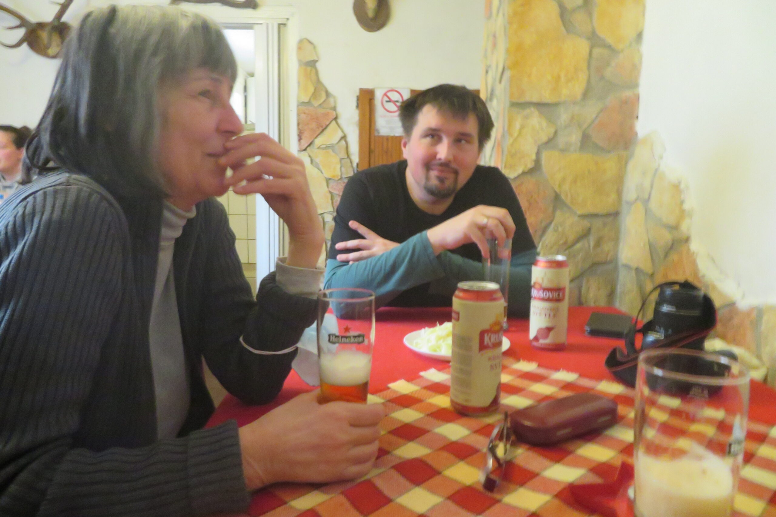 Leérve kiderült, hogy olyan nagyon nem is kellett volna sietnem, mert a vár tövében nyitva találták a Béla bácsi nevű vendéglőt. Én szeretem az ilyen helyeket, gyerekkori nosztalgia ébred bennem a lambériás falak láttán. A falakon irredenta képek és térképek, nógrádi metszetek. Csatlakoztam én is egy sörre és elbeszélgettünk kicsit. Szeretem az ilyen kocsmákat, el tudom képzelni, hogy az itt felszolgált étel is ízletes és tápláló lehet, nem hinném hogy túl sok pénzért.