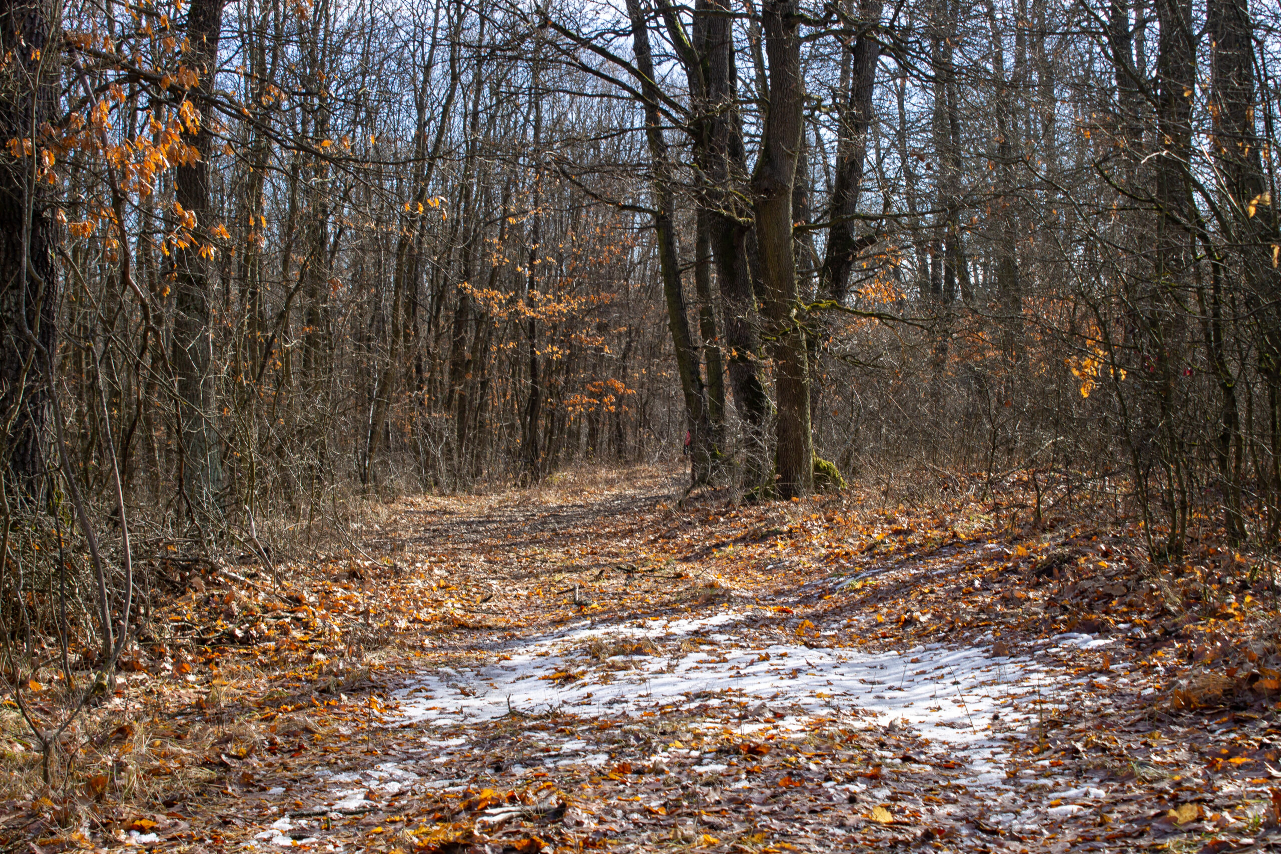 Hát ez igazán vacak egy rész volt. Újra felvettem a tempót és nagy lendülettel indultam le a hegyről, az enyhén lejtő hegyoldalon. Sajnos ez itt valami erdészeti út volt, amit nem csak a túrázók dagonyáztak össze de terepjárók is. Mély sár, csúszós részek a széleken tövises-csipkés bokrok. Szerencsére hamarosan rátaláltam egy korábbi útra, ami kanyargósabban haladt és időről időre keresztezte a kék vonalát. Hosszabb volt, de inkább csak nyálkás és főleg avarral borított. Jó pár plusz kilométert felszedtem rajta, de a hivatalos csapáson később olyan túrázókat láttam, akiknek a fél oldala sáros volt az esés miatt. Meg is ijedtem kicsit, mert a bőr télikabátomban jöttem, nem örültem volna egy nagy adag sárnak.