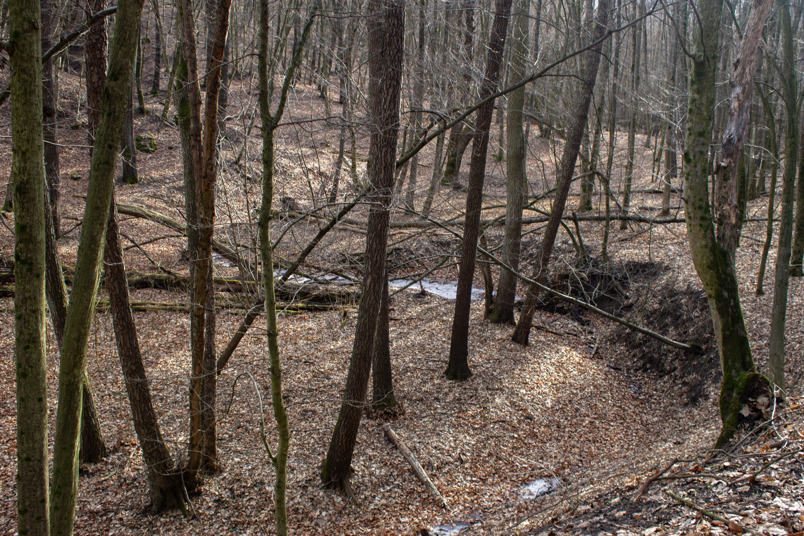 Valószínűleg a tavasz, nyár vagy ősz remekül áll ennek a kis patak völgynek, de a tél nem sokat emelt ki a bájából. A patak kedvesen kanyargott alattunk, egy csúszós sárperem széléről láthattad, amint a kanyarokban jégpáncél alá bújik. Bájos látvány volt, különösen ahol egy kis híd keresztezte és átkeltünk rajta. Mindazonáltal jó volt felérni Szendehely fölé a dombtetőre, ami egy nem várt kaptató vége volt és megpihenni egy pöttyet a betonút szélén egy kis kápolna mellett. Igyekeztünk lepiszkálni a sár javát a cipőkről és a szendehelyi mező utcán nagy örömmel fedeztünk fel hókupacokat, amikben szépen levakartuk a maradékot is.