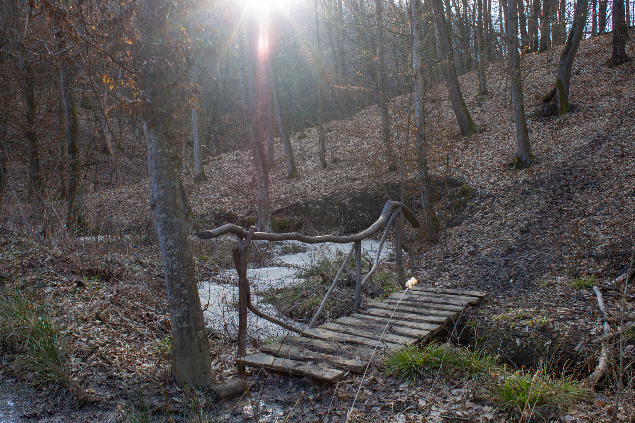 Én nagyon szeretek erdőben sétálni, szeretek megállni és hallgatni a neszeket, figyelni a fényt a fák között, de ilyenkor nem sok mindent találsz. Az erdő még nem ébredt fel igazán, minden barna csak az avar sárgállik itt-ott. A levegő friss volt, a nap kellemesen melegített és jó volt kimozdulni, de maguk a fák nem sokat nyújtottak élményként. Hamarosan leértem Magyarkútra, ahol megbeszéltük, hogy találkozunk. Biztos voltam benne, hogy én érkezek később, de a pecsételés után hiába nézelődtem Apuékat sehol sem találtam. Végül telefonon megbeszéltük, hogy a forrás melletti kis vendéglőben bevárom őket, mert még jócskán mögöttem voltak.